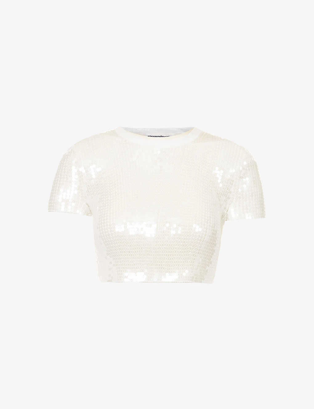Be the first to review “ALEXANDER WANG Sequin-embellished Cropped Woven T-shirt” Cancel reply