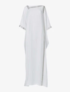Be the first to review “Asymmetric Metallic-embroidered Woven Maxi Kaftan” Cancel reply