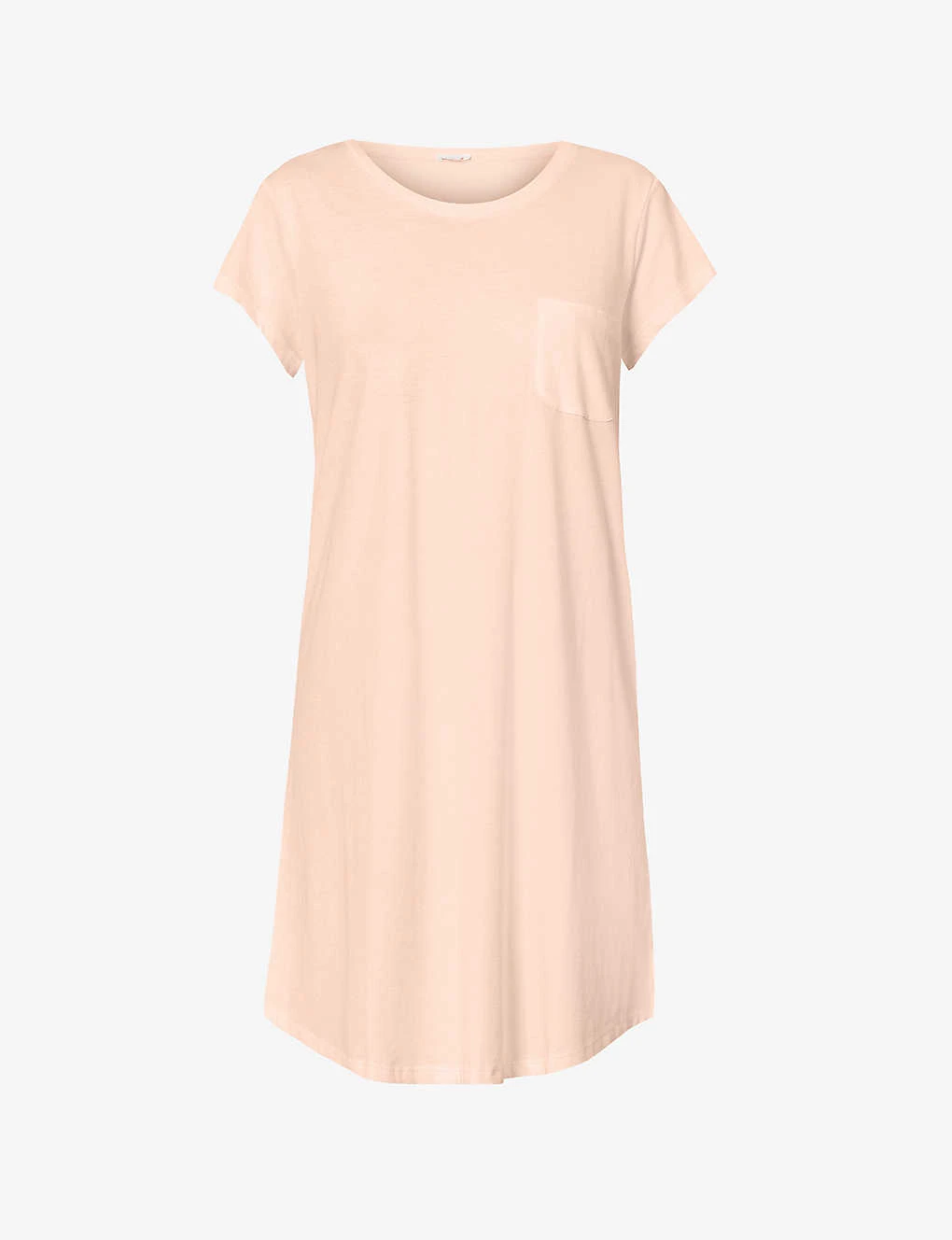 - Relaxed fit, round neckline, cap sleeves, patch pocket at chest, curved hem, ribbed trims