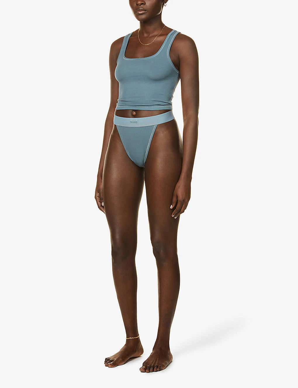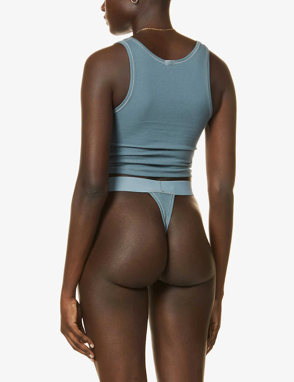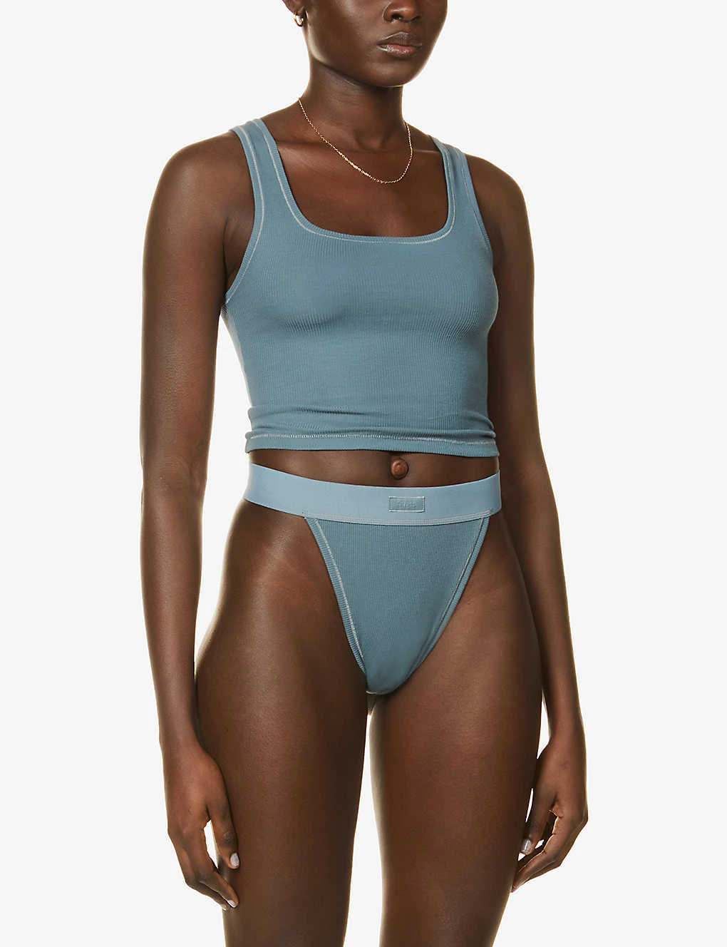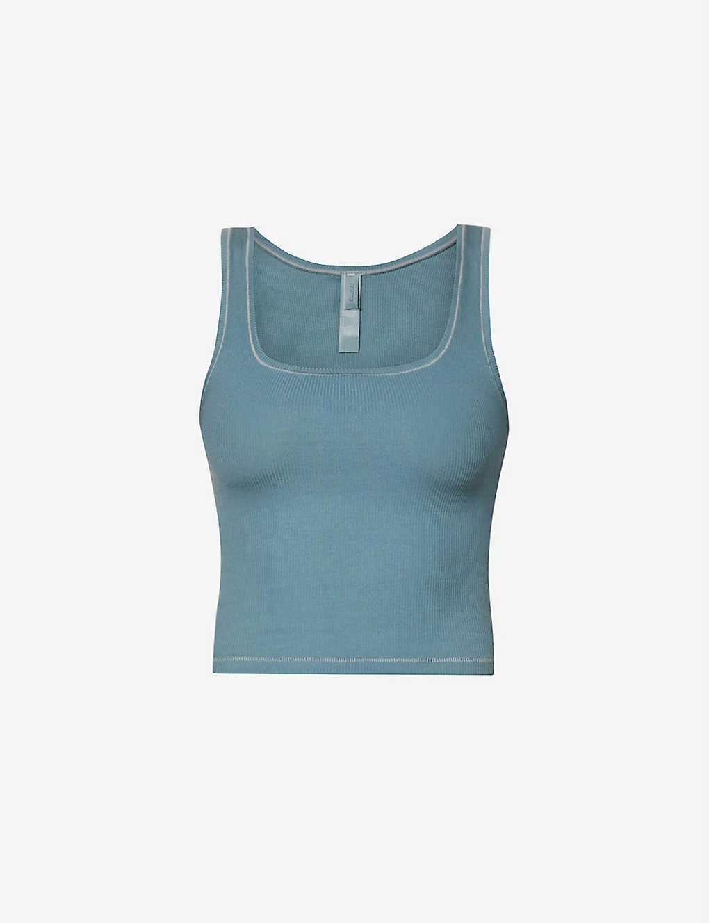 - Scoop neck, shoulder straps, slim-fit, all-over ribbed texture