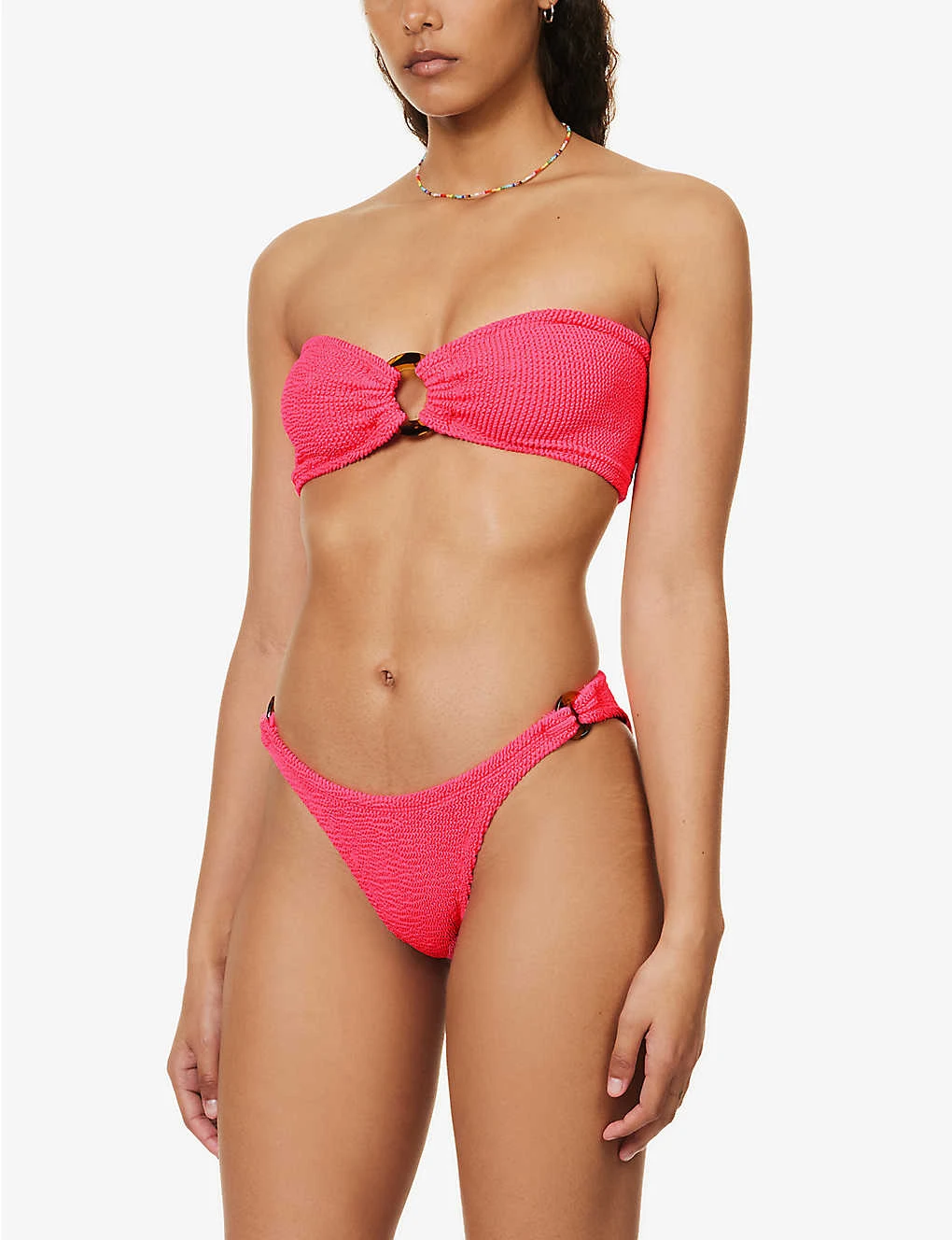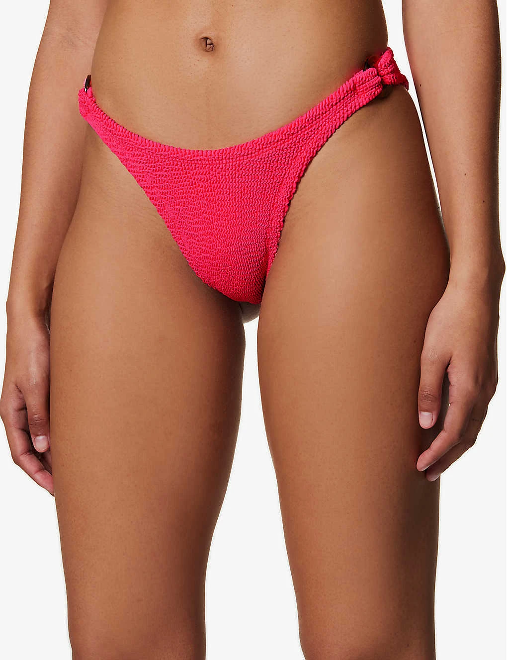 - Regular-fit, high-rise, elasticated waistband, ring-loops at sides, all-over crinkled weave, full-coverage at back
