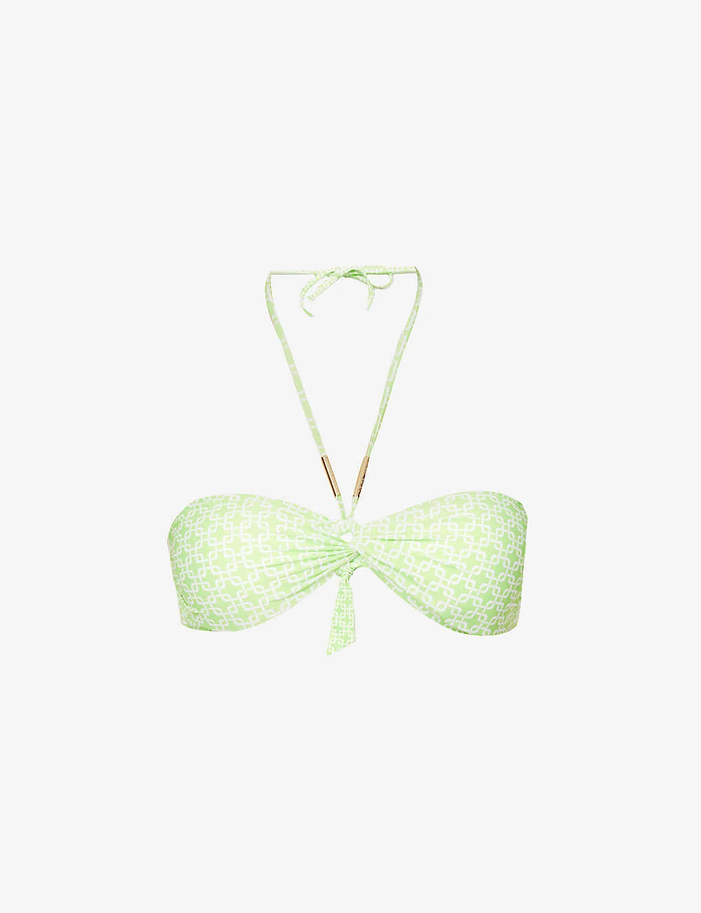 - Halterneck, soft moulded cups with removeable padding, all-over woven pattern, gathered at sides, branded gold-toned hardware