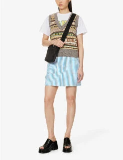 Ganni Stripe-embellished Organic-denim Mini Skirt