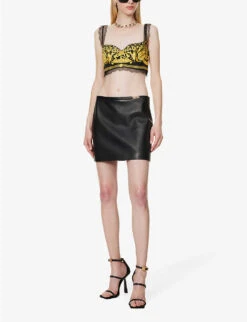 Versace Logo-plaque Slim-fit Leather Mini Skirt