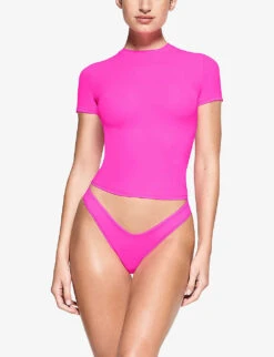 - Scoop neck, short sleeves, slim-fit, tonal stitching