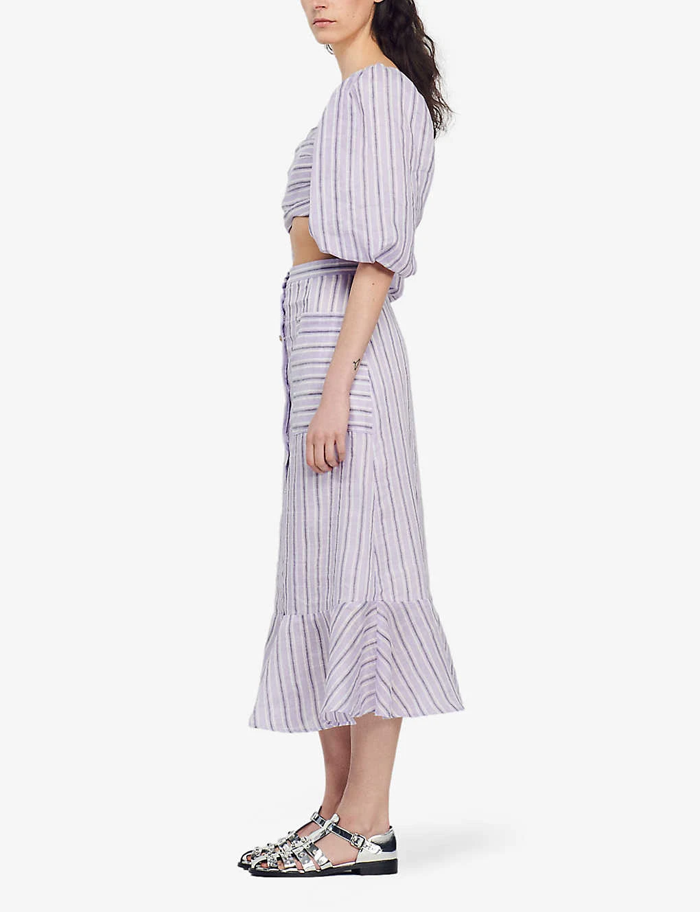 Be the first to review “Sandro Striped Linen-blend Midi Skirt” Cancel reply