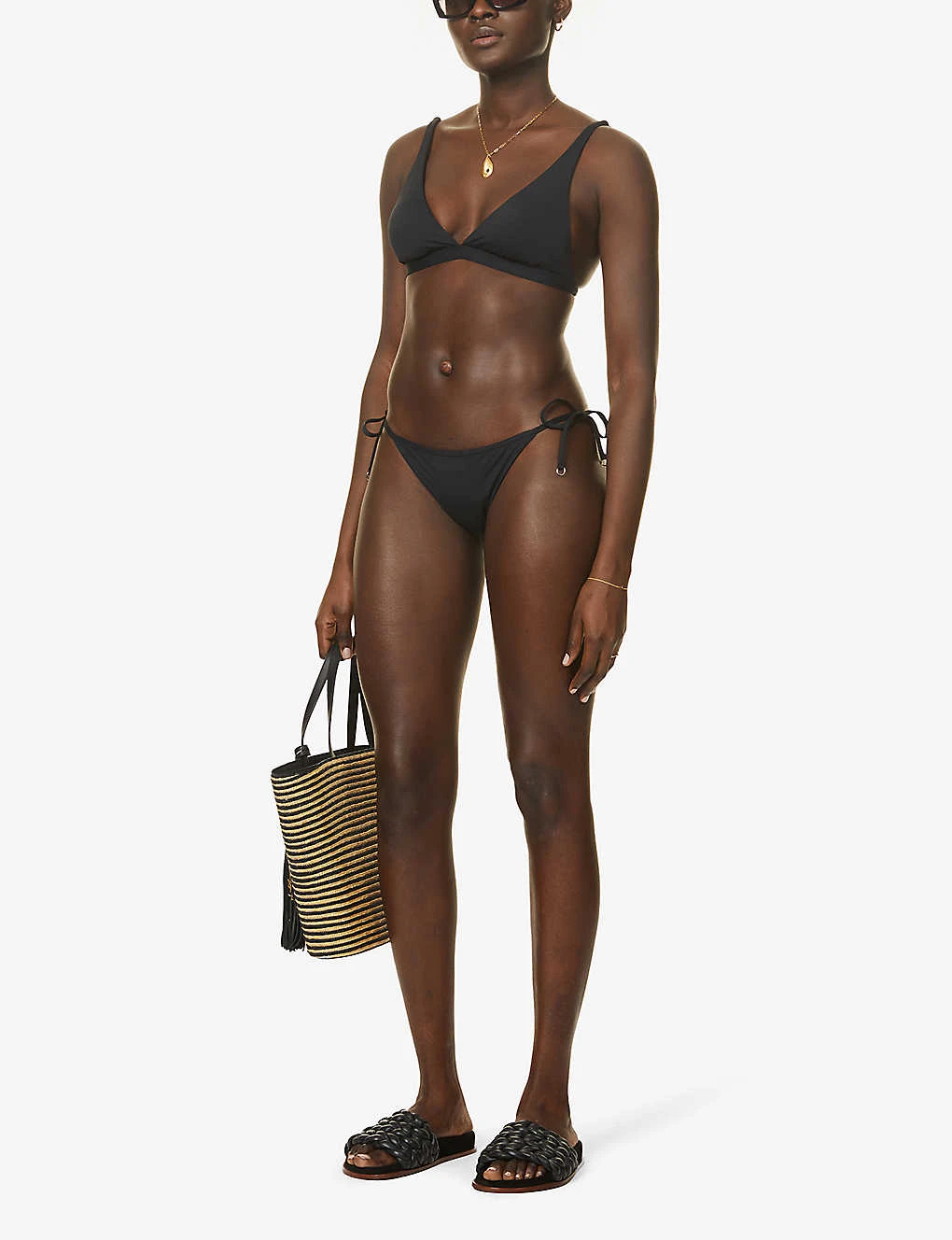 - Mid-rise, elasticated waistband, silver-toned hardware, self-tie sides, full-coverage at back, fully lined