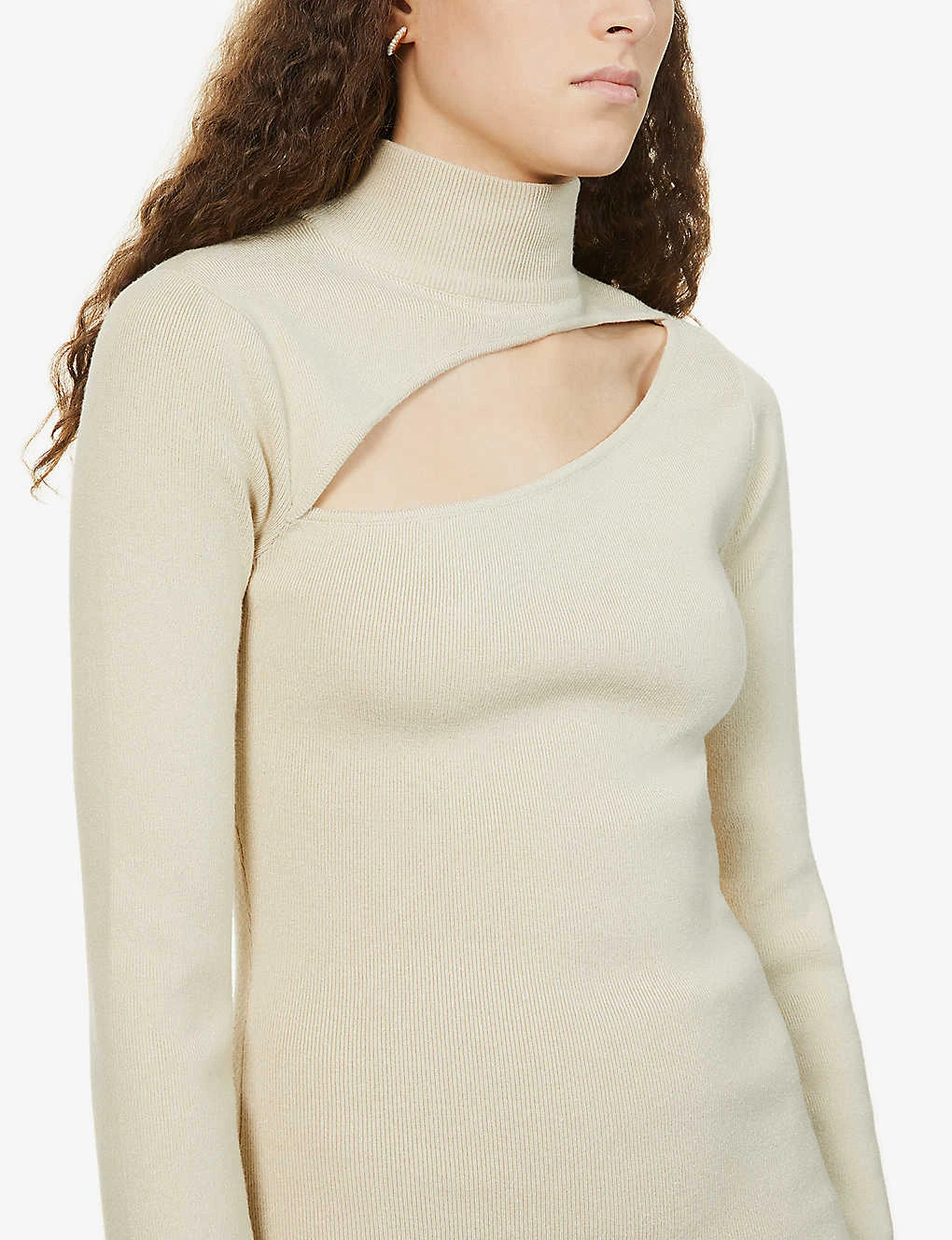 - Turtle neck, long sleeves, cut-out panel at front, slim-fit, all-over ribbed texture