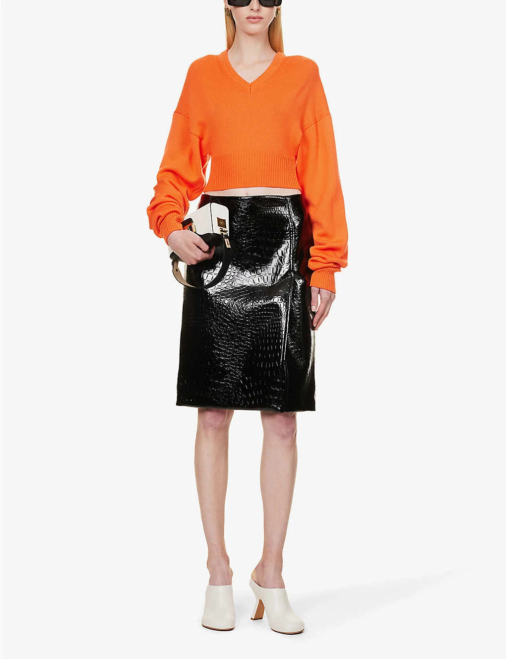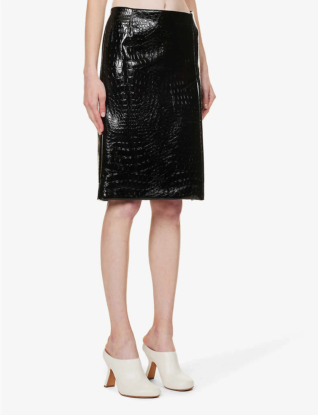 Be the first to review “Sportmax Melinda Split-hem Croc-embossed Leather Mini Skirt” Cancel reply