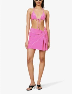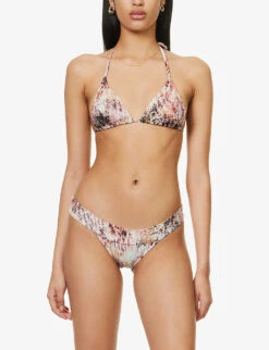 AllSaints Gorah Geometric-print Stretch Recycled-nylon Bikini Bottoms