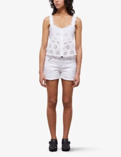 - High-rise, straight fit, elasticated waistband, lace and scalloped trim