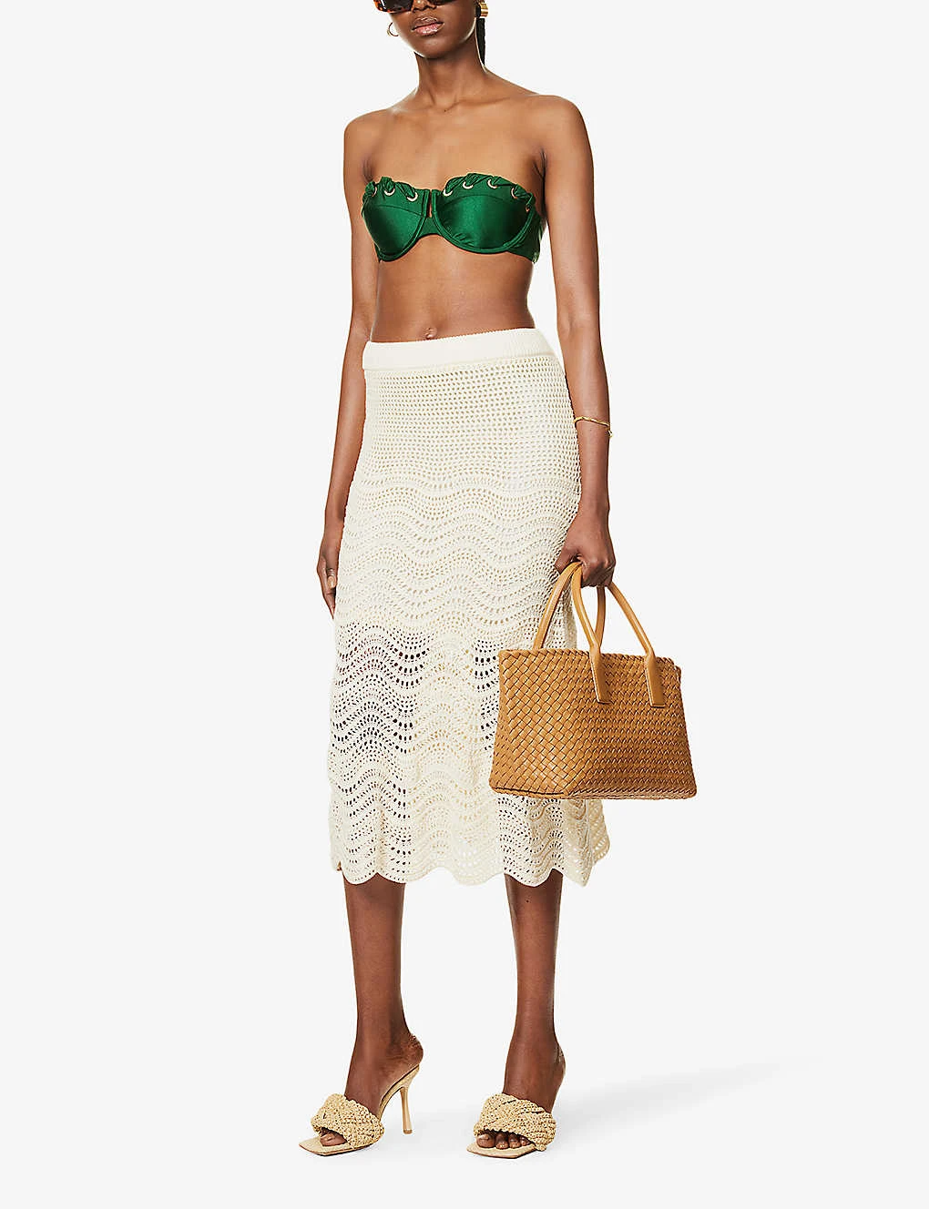 - Regular-fit, balconette silhouette, soft moulded cups, underwired cups, gold-toned hardware, eyelet trims, branded clasp at back